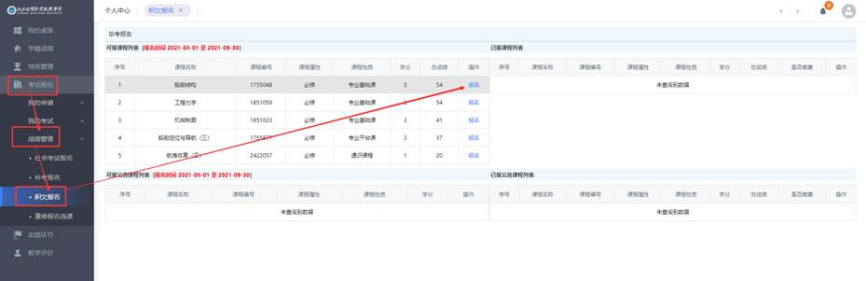 步骤二:登录之后依次按照菜单【考试报名】--【成绩管理】--【积欠报名】